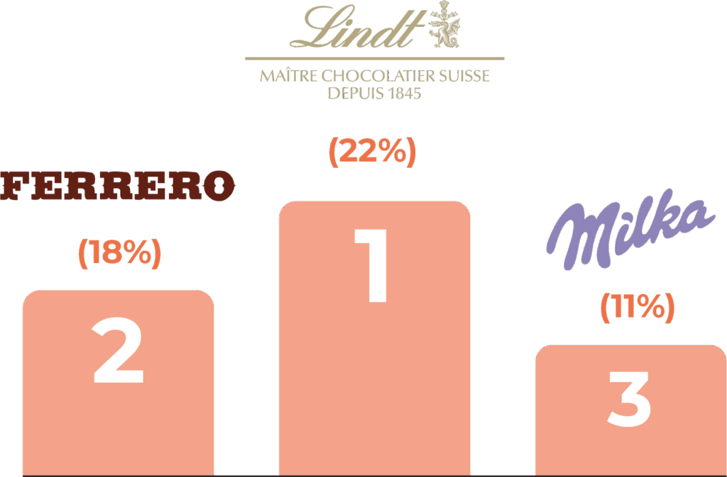 Drei Marken sind in puncto In-Store-Präsenz besonders hervorgestochen: Lindt (22 % aller Displays), Ferrero (18 %) und Milka (11 %).